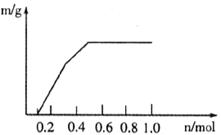 的溶液,阴极析出固体的物质的质量m(g)与溶液中通过电子的物质的量n(mol)的关系如下图。下列说法正确的是