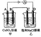 B.甲烧杯中B极上电极反应式4OH--4e-=2H2O+O2↑