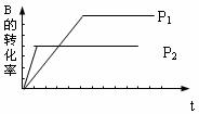 x C(g)的可逆反应,在不同的压强(P1、P2)下测得B的转化率与时间的关系如图曲线所示,以下结论中,正确的是