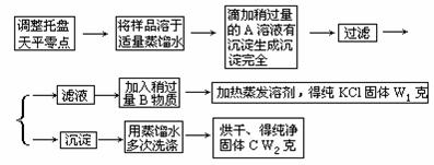 (3)过滤得到沉淀C时,为检验沉淀是否洗净,应用蒸馏水多次洗涤后,在最后几滴滤出液中加入______,若______,表示沉淀已洗净。