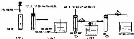 (2)(8分)下图甲是课本中验证铜和浓硝酸反应的装置,乙、丙是师生对演示实验改进后