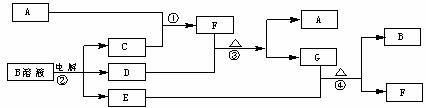 (1)写出化学式A ,D ,F ,写出电子式G ;