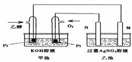 18.下图是一个乙醇燃料电池工作时的示意图,乙池中的两个电极一个是石墨电极,一个是铁电极,工作时M、N两个电极的质量都不减少,请回答下列问题: