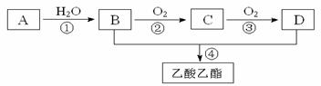 2CH3COOH。现以A为主要原料合成乙酸乙酯,其合成路线如下图所示。