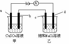 C.当电解一段时间后,将甲、乙两溶液混合,一定会产生蓝色沉淀
