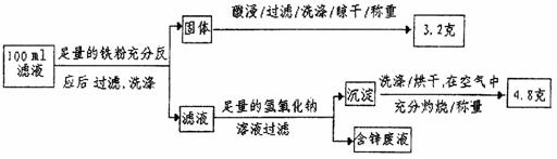 由100mL滤液中Cu2+的浓度为 mol·L-1,Fe2+的浓度为 mol·L-1。