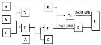 20、(7分)室温下,单质A、B、C分别为金属固体、黄绿色气体与无色气体,在合适条件下,它们可以按下面的流程进行反应。又知E溶液是无色的。请回答: