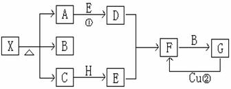 23.(12分)下图表示中学化学中几种常见物质的转化关系,图中省略了部分产物和反应条件,已知常温下,B、G是液体,X、H是固体且两者化学式量相差1,其余物质均为气体,且E是一种常见的气体单质,F是红棕色气体。