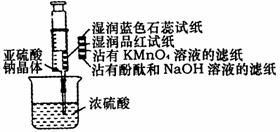 16.如下图所示,在注射器中加入少量Na2SO3晶体,并吸入少量的硫酸(以不接触纸条为准)。则下列有关说法正确的是 ( )