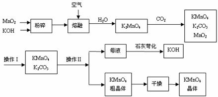 (4)操作Ⅰ的名称是_____________;操作Ⅱ是根据KMnO4和K2CO3两物质在__________(填性质)上差异,采用____________(填操作步骤)、趁热过滤得到KMnO4粗晶体的。