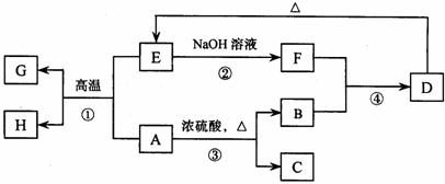 24.(8分)已知A、B、C、D、E、F、G、H 可以发生如下图所示的转化,反应中部分生成物已略去。其中,A、G为同一主族元素的单质,B、C、H在通常情况下为气体,化合物C是一种形成酸雨的大气污染物。