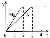 18.镁和铝分别与等浓度、等体积的过量稀硫酸反应,产生气体的体积(V)与时间(t)关系如下图。反应中镁和铝的关系错误的是