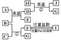 31.(9分)下图中A-J均代表无机物或其水溶液,其中B、D、G是单质,B是地壳中含量最高的金属元素,G是气体,J是磁性材料。根据图示回答问题:
