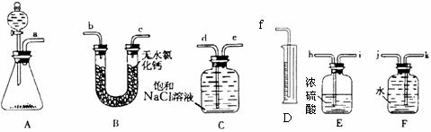 (6)某同学在实验中发现量筒里未收集到液体,其失败的原因可能是下列中的(填A、B、C等代号) 。①装置漏气②浓盐酸已变成稀盐酸③所选仪器容积太大④漂白粉已全变质⑤e接f ⑥d接f