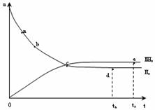2NH3(g),△H<0,673K,30MPa下n(NH3)和n(H2)随时间变化的关系如下图所示。下列叙述正确的是