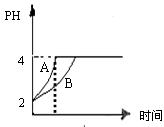 (2)常温下,取pH=2的盐酸和醋酸溶液各100mL,向其中分别加入适量的Zn粒,反应过程中两溶液的pH变化如下图所示。则图中表示醋酸溶液中pH变化曲线的是 (填“A”或“B”)。设盐酸中加入的Zn质量为m1, 醋酸溶液中加入的Zn质量为m2。
