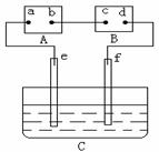 8.下图中A为电源,B为浸透饱和食盐水和酚酞试液的滤纸,C为盛有稀硫酸的电解槽,e、f为Pt电极。接通电源后,发现d点显红色。下列有关说法正确的是 ( )