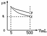 22.pH=11的x、y两种碱溶液各5mL,分别稀释至500mL,其pH与溶液体积(V)的关系如图所示,下列说法正确的是 ( )