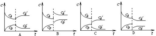 B(g)(放热反应)从反应开始至建立平衡后改变某一外界条件(外界条件指的是温度、压强、浓度和催化剂)使平衡发生了移动至新的平衡,该过程中各物质的浓度(用c表示)随时间变化情况如下图所示,试分析各图,指出导致平衡移动的因素和平衡移动的方向: