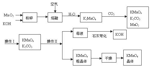 (5)操作Ⅰ的名称是__________;操作Ⅱ是根据KMnO4和K2CO3两物质在__________(填性质)上的差异,采用__________(填操作步骤)、趁热过滤得到KMnO4粗晶体的。