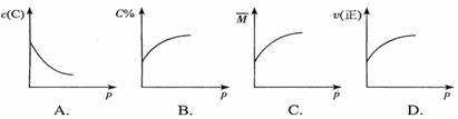 xC(g),平衡后,C的体积分数为w%,若维持容积和温度不变,0.6molA、0.3molB和1.4molC为起始物质,达到平衡后,C的体积分数也为w%。平衡后若缩小容器体积,C的浓度c(C)、C的体积分数C%、混合气体平均相对分子质量(M)和正反应速率[v(正)],随压强(p)的变化,一定符合的是 (