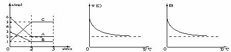 18.在2L密闭容器中加入或通入一定量A、B、C三种物质,在一定条件下发生反应(如图1),3min后给体系加热,气体C的体积分数Ψ(C)和混合气体的平均相对分子质量M均随温度分别发生了图示变化(如图2、图3)。下列有关说法不正确的是 ( )