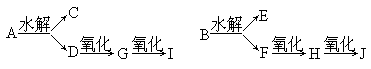 25.(8分)有两种含碳、氢、氧的酯A、B,其组成均为含碳54.5%,含氢9.1%,其密度(蒸气)均为3.94g/L(标准状况),A与B能发生如下反应,经测定,其中B、E、G、H、I能与银氨溶液发生反应并在分子中不含支链.
