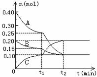 (1)若t1=10min,则0至t1时间内C物质的平均反应速率为 ;该反应在t2时刻达到平衡,则其化学反应方程式为 。