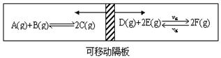 28.(6分)在一个容积固定的反应器中,有一可左右滑动的密封隔板,两侧分别进行如图所示的可逆反应。各物质的起始加入量如下:A、B和C均为4.0mol,D为6.5mol,F为2.0mol,设E为x mol。当x在一定范围内变化时,均可通过调节反应器的温度,使两侧反应都达到平衡,并且隔板恰好处于反应器正中位置。请填写以下空白: