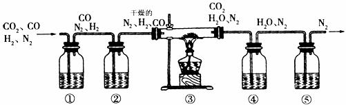 图中①-⑤各装置内可供选择的试剂有:a.浓H2SO4.b.稀H2SO4;c.NaOH溶液;d.澄清石灰水;e.Cu粉;f.CuO粉末;g.稀盐酸 (所有试剂可重复使用;所有的试剂都是足量的)