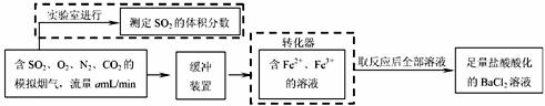 (2)还有学者提出利用 Fe 2十、Fe3十等离子的催化作用,常温下将SO2氧化成SO42一而实现SO2的回收利用。某研究性学习小组据此设计了如下方案,在实验室条件下测定转化器中SO2氧化成SO42一的转化率。
