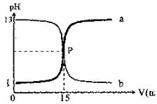 12.下图曲线a和b是盐酸与氢氧化钠的相互滴定的滴定曲线,下列叙述正确的是 ( )