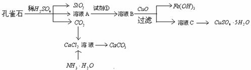孔雀石主要含Cu2(OH)2CO3,还含少量Fe、Si的化合物。实验室以孔雀石为原料制备CuSO4·5H2O及CaCO3,步骤如下:![]()