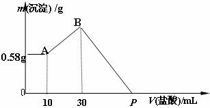 (2)把由NaOH、AlCl3、MgCl2三种固体组成的混合物,溶于足量水中,有0.58 g白色沉淀析出,向所得的浊液中,逐滴加入0.5mol/L 的盐酸,加入盐酸的体积和生成沉淀的质量如图所示: