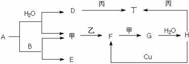 23.如图转化关系中A-H为中学常见化合物,甲、乙、丙、丁为常见单质,其中甲、丁常温为气体。已知单质乙、化合物A为黄色(或淡黄色)固体。乙经过连续与甲反应后,再与水化合,是工业上制H的反应过程。B、F两种气体都能使澄清石灰水变浑浊。(部分反应物或产物略去)