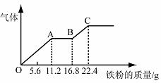 22.将某稀硫酸和稀硝酸的混合溶液200mL。平均分成两等份。向其中一份中逐渐加入铜粉,最多能溶解19.2%;向另一份中逐渐加入铁粉,产生气体的量随铁粉质量增加的变化如下图所示(已知硝酸均只被还原为NO气体)。下列分析或结果不正确的是( )