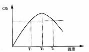2C(g),在反应过程中体系的温度持续升高,实验测得混合气体中的C的含量与温度关系如图所示。下列说法正确的是 ( )