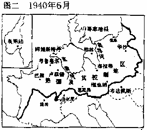 43.下列三幅地图反映了不同时期德国的版图和在欧洲控制区域的情况。结合德国本身及欧美大国对德政策的变化,说明各图形成的原因。