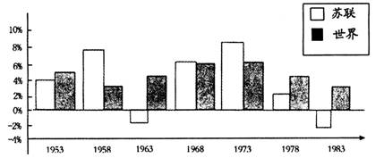 37.1953-1983年苏联与世界实际GDP平均增长率对比(%)