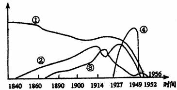 26.下列四条曲线反映了中国近代四种经济形态的发展演变过程
