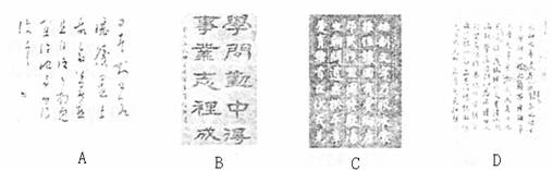 16.余秋雨说:“汉字是第一项中华文明长寿的秘密,……它是活着的图腾,永恒的星辰。”下列书法作品中,笔画简约,勾连不断,线条流畅纵清,具有极高的审美价值字体是