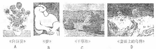 21.下列四幅世界名画中,艺术风格不同于其它的是 ( )