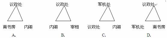 9.康熙帝统治时期,清朝中央机构出现三足鼎立状态,下列图示正确的是 ( )