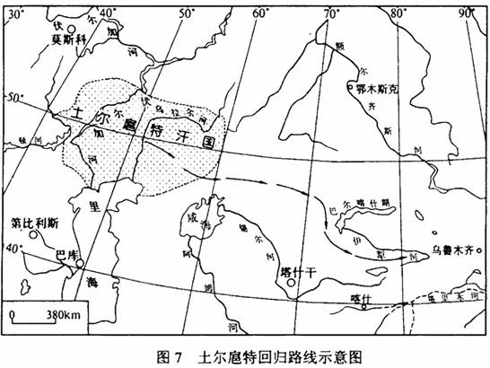 (3)土尔扈特在回归途中历经艰辛,其中来自自然的威胁主要有哪些?(8分)
