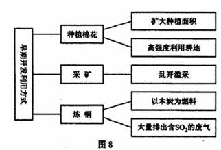 (3)分析图8,说明田纳西河流域早期开发利用对环境的影响。(10分)
