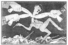 12.下图是1942年的一幅战争宣传海报,题名《绞死希特勒》。图中三只手代表着当时对德作战的主要三个国家,这三国是
