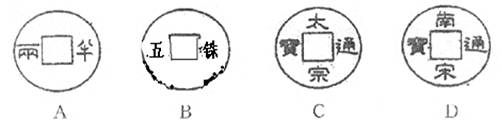 5.中华几千年的文明为我们留下了丰富的文物,懂一点文物鉴赏的本领,无疑会有益于我们准确掌握历史信息。请仔细观察和辨别下列铜币的拓片,哪一枚不是赝币 ( )