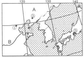 (2)图中①⑤两地气候类型相同,但气候特征有所差异,分析两地气候特征的差异,并说明造成差异的主要原因。(8分)
