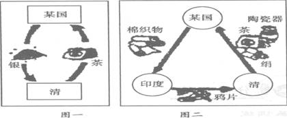 11、某位同学在读有关鸦片战争历史书籍时,看到下面两幅图,图一至图二代表清朝与某国贸易的转变。图中的某国指的是哪一个国家