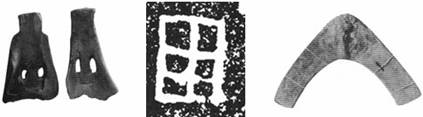 图一 骨耜 图二 甲骨文中的“田”字 图三 战国时期的铁口犁